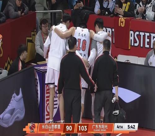 不過,廣東隊雖然收獲了一場大比分勝利,但是,有一件事,卻讓球迷有一點揪心,沒錯,那就是在第四節比賽的時候,廣東隊中鋒焦泊喬,出現了意外受傷的情況。在比賽還有5分42秒的時候,焦泊喬在防守移動過程中,被對方絆倒,隨后,我們就可以看到焦泊喬捂住自己的腳踝,表情十分痛苦。